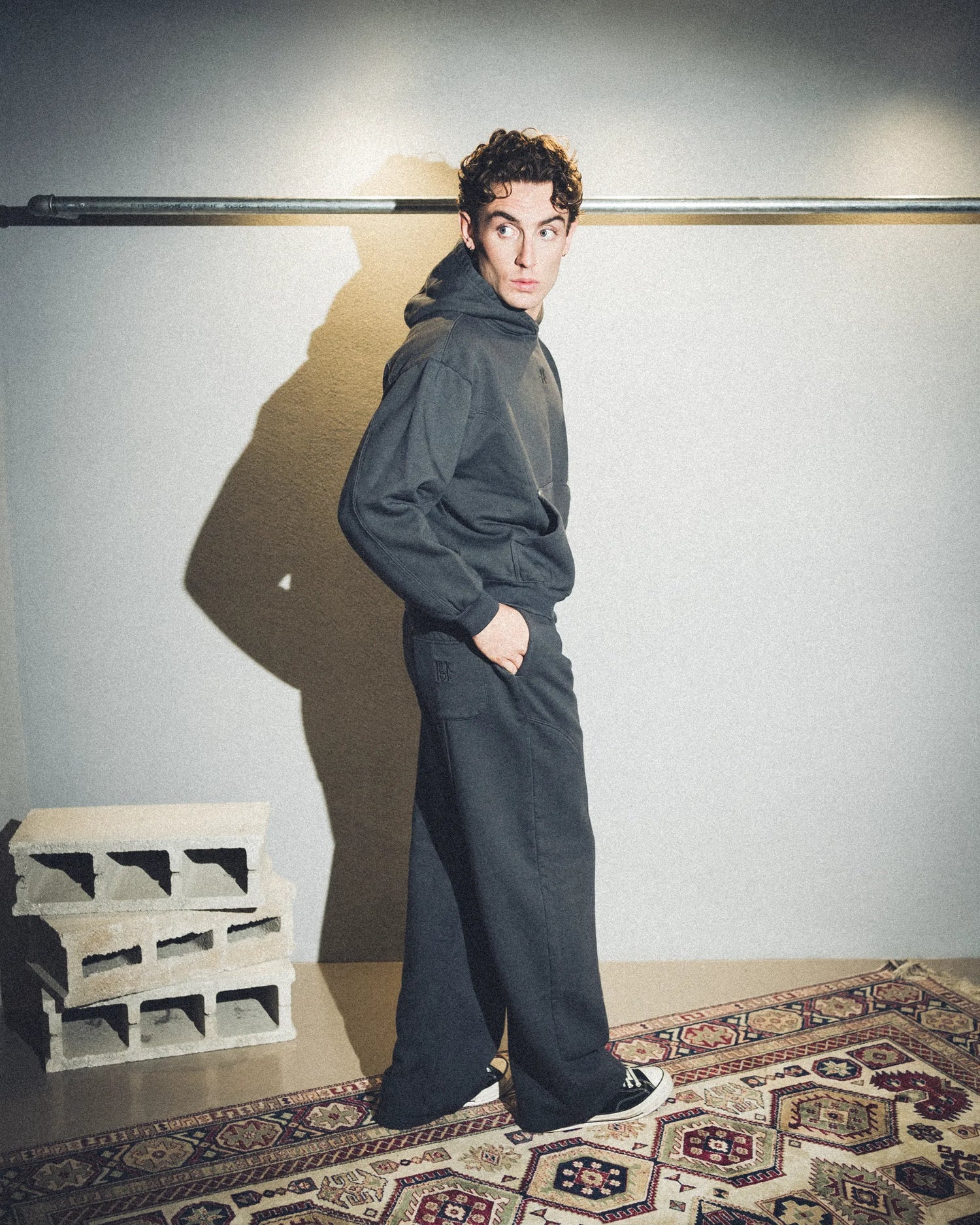 Felpa hoodie logo anteriore dettaglio laccio cappuccio e cuciture in rilievo fit oversize.
