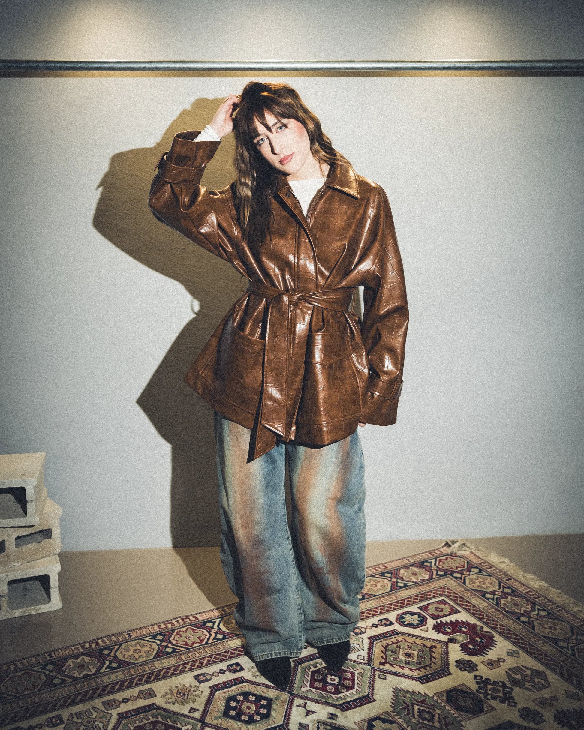 Fit relaxed, cintura in vita, maniche a campana.
